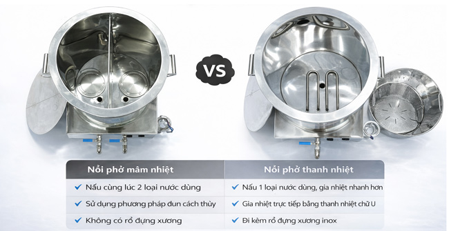 Nồi nấu phở thanh nhiệt và mâm nhiệt: So sánh chi tiết A–Z