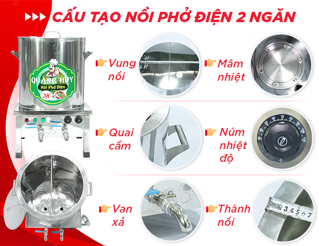 Lợi ích nồi nấu phở 2 ngăn 100L mâm nhiệt Quang Huy mang lại