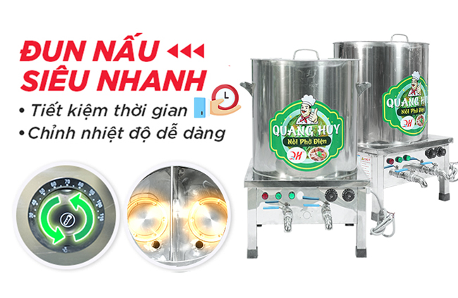 Lợi ích nồi nấu phở 2 ngăn 80L mâm nhiệt Quang Huy mang lại