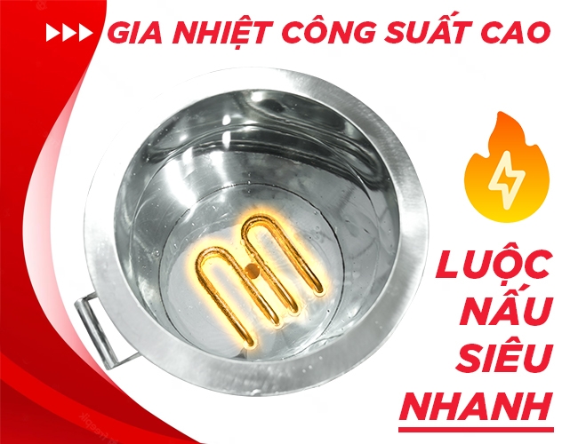 - Mayso công suất lớn hình chữ U giúp gia nhiệt nhanh, tản nhiệt đều. Từ đó, giúp đun sôi nước và làm chín thực phẩm thực phẩm trong nồi nhanh chóng.