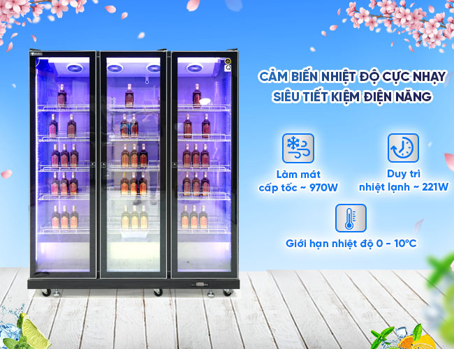 - Dung tích tổng 1600L, có thể chứa tới 250 chai rượu/lượt, phù hợp với nhu cầu sử dụng của các quán bar, nhà hàng,…