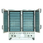 72 – 96 con/mẻ (6-8 con/khay) Hấp gà cần rút bớt 1 nửa số khay/tủ |