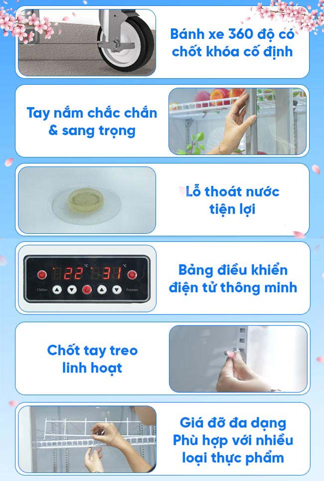 - Dung tích 1100L, phù hợp với nhu cầu sử dụng tại các cơ sở kinh doanh quy mô vừa và nhỏ.