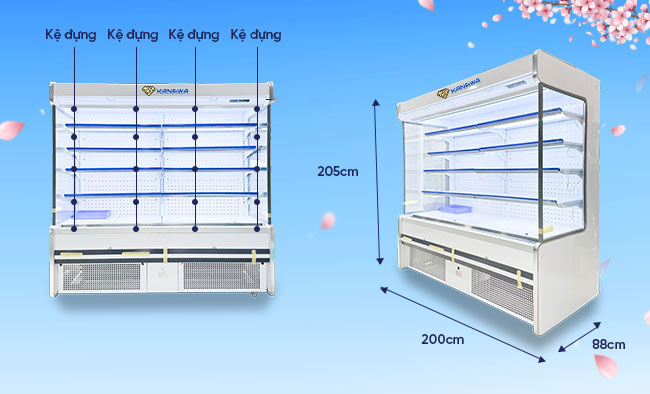 - Thiết kế dạng tủ mát đứng với kích thước tương đối (2000 x 880 x 2050mm)